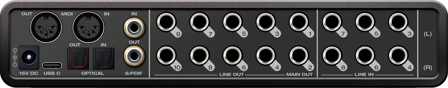 - 10 DC-coupled line outputs via 6.3 mm stereo jack